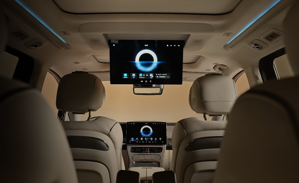 在科技配置上,更是将豪华与实用推向新高度。M8乾崑支持7屏互联,包括15.6 英寸中控屏、12.3英寸仪表盘、17.3英寸3K分辨率高清吸顶屏、双侧5英寸扶手屏、流媒体后视镜,以及G-link 副驾屏平板。