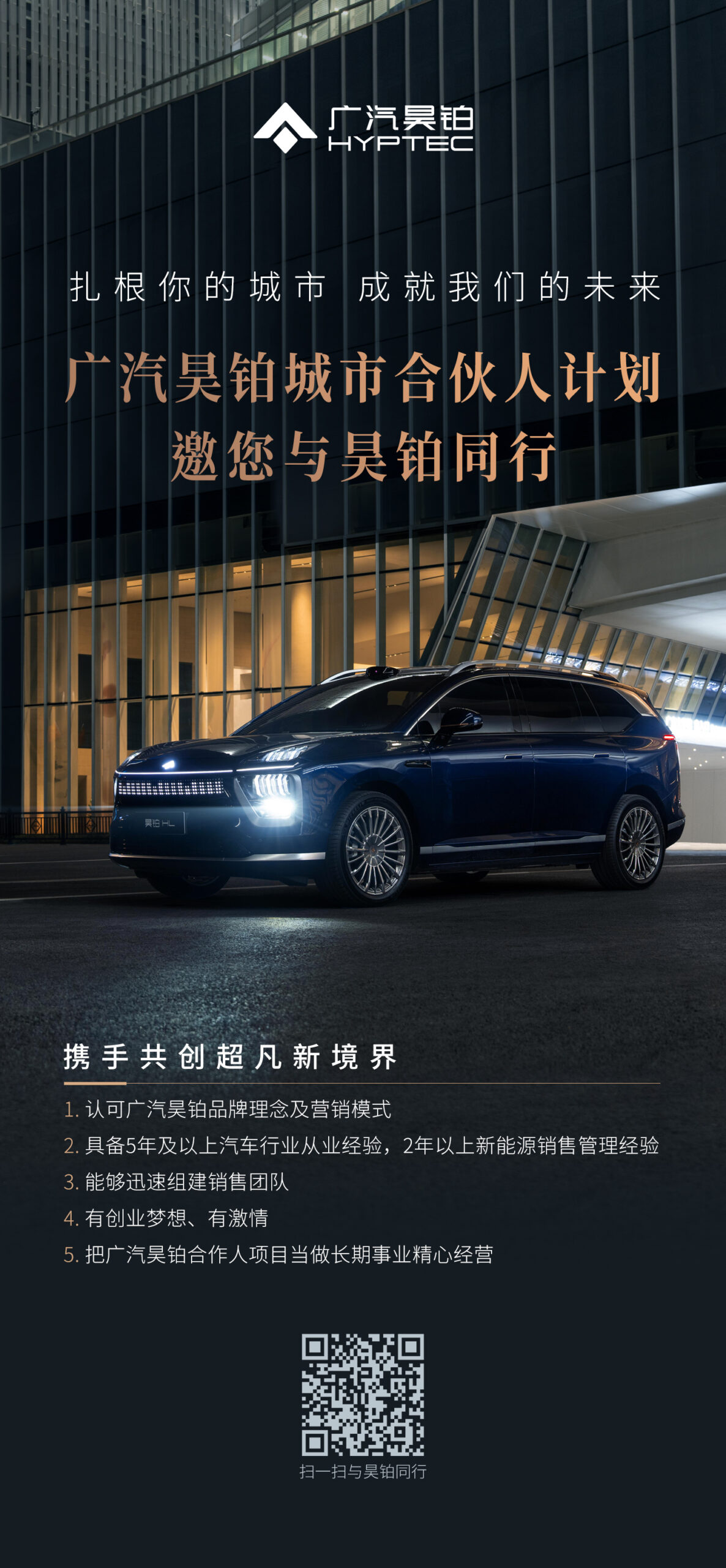 随着直营交付中心+代理制模式的改革推进,广汽昊铂同步启动了“城市合伙人”招募计划。这一计划为有志于新能源汽车领域的职业经理人提供了创业机会,不仅为品牌拓展市场提供了新动能,也为整个新能源汽车行业的发展注入了创新活力。