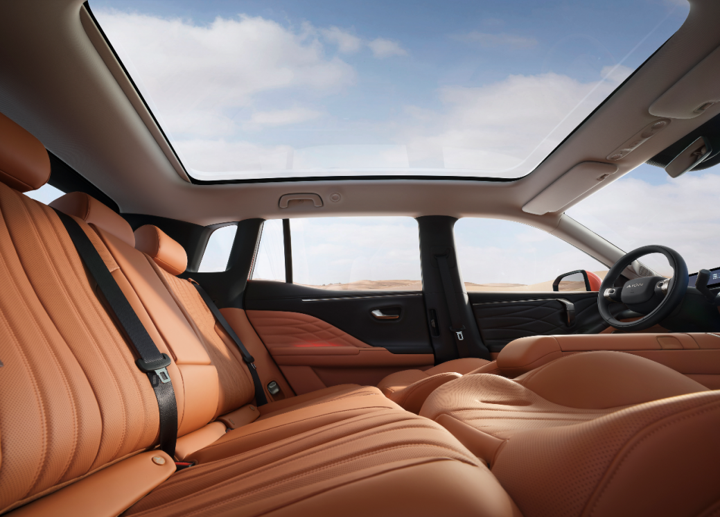 中国消费者买SUV,看中的就是舒适豪华。埃安霸王龙拥有越级豪华的软包大空间,不仅标配皮质座椅+皮质方向盘,车内触手可及之处都是软包材质,宽大的座椅采用豪车同款发泡技术,柔软厚实,包裹感和支撑性俱佳,真正实现久坐不累。空间表现也能让全家满意。后门开合角度接近90度,上下车、安装儿童座椅更方便;后排头部、腿部空间都超过1米,比同级竞品平均超出半拳左右。后排座椅支持18档20°可调,最大靠背角度达137°,旅途中也能轻松半躺。