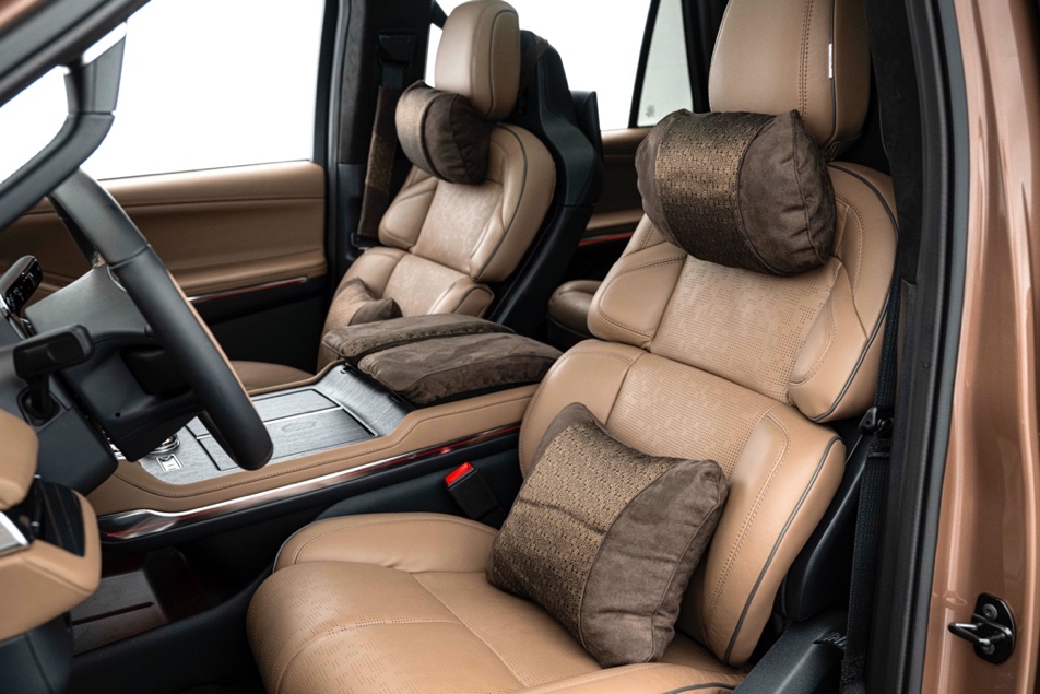 而近2米的车高也允许二排统帅座的坐高设置到近1米,确保前后排乘客窗外视野不受阻挡,“统帅视线”尽收广阔天地,一览众山小。再配合48英寸环抱式4K超高清显示屏和“焕活舒享”一键式全体感车内SPA体验,身处车内,所触所感尽是巅峰美式豪华的魅力。