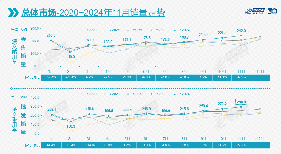 正是得益于上述利好因素的共同加持,11月我国汽车市场终端成交量持续走高。