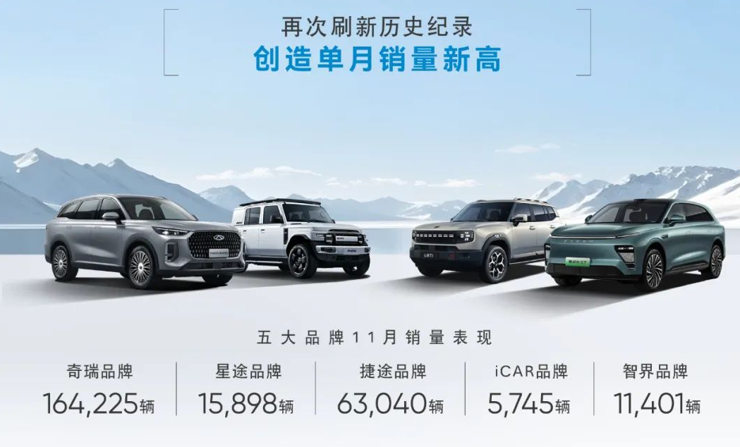 而在瑞虎8、瑞虎7和艾瑞泽8等传统燃油车以及风云T9和风云A8等新能源车的共同努力之下,11月奇瑞的零售和批发销量双双大幅增长,均创下各自领域的单月历史新高。
