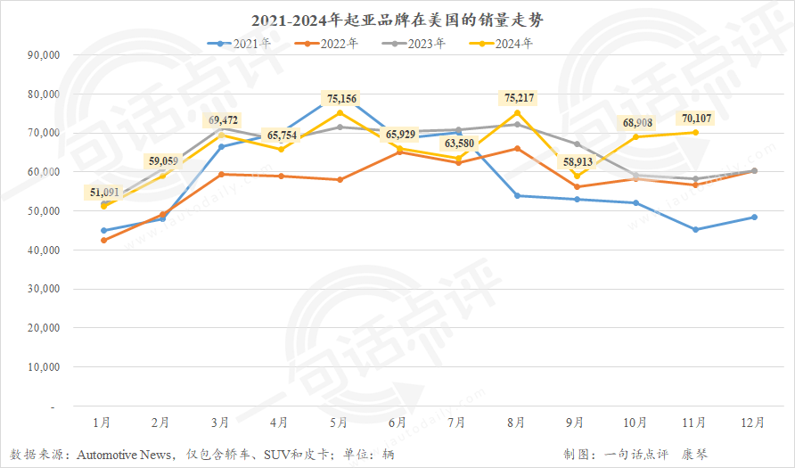 受Soul交付疲软和Rio停产,加上K5销量大幅减少的影响,今年起亚有7个月同比为负。庆幸的是,在10月和11月连续的大幅增长之后,起亚今年前11个月的同比再次转正,微增0.1%。只要12月继续保持,它应该也能刷新自身在美国市场的年度纪录。