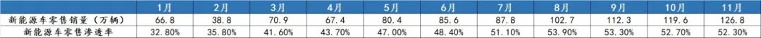 殊不知,刚刚过去的11月,该项关键数据继续维持着向好的表现,从乘联会的统计来看,达到52.3%,较去年同期渗透率提升12个百分点。
