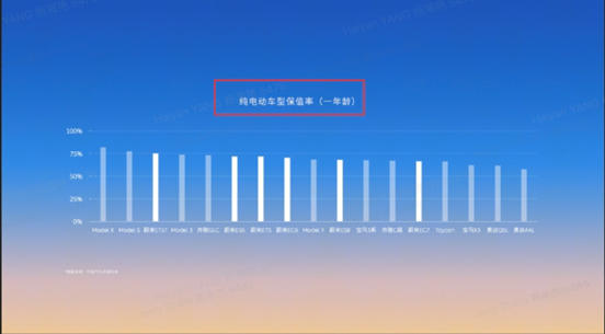 更为值得关注的是,今年NIO品牌车型平均成交价在33万元左右;在30万元以上高端纯电市场份额超过40%;如果以一年期为评判标准,蔚来ET5T的二手车保值率甚至超越了特斯拉Model 3与宝马3系。