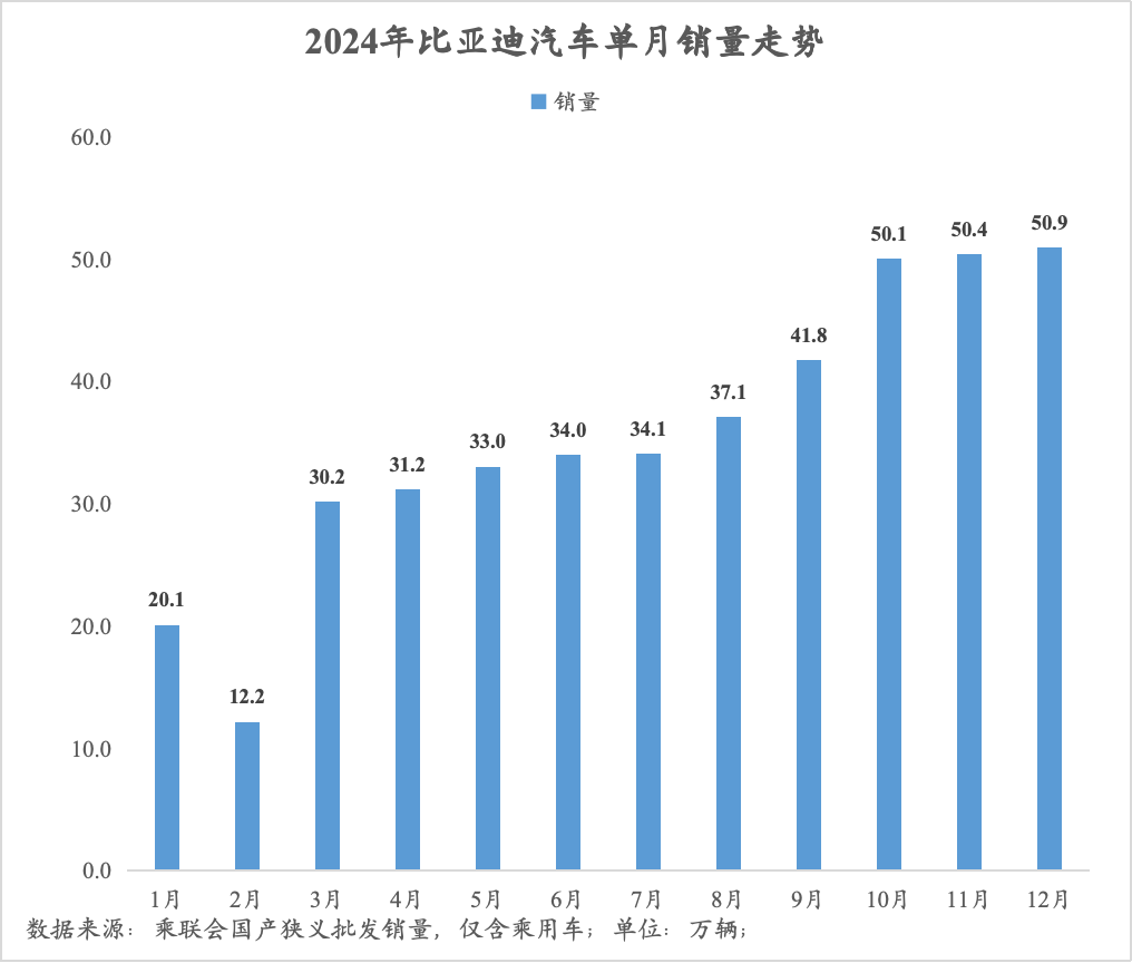 强大的DM-i技术赋能,为比亚迪穿上铠甲,推动比亚迪销量一路走高。6月,比亚迪月销量突破34万辆刷新销售纪录,9月,月销量超41万辆,再次创下历史新高,11月和12月份,月销量迈过50万辆大关,势不可挡。