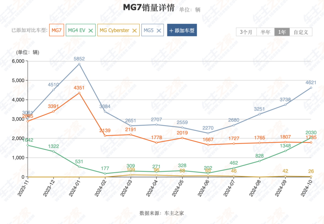 数据显示,2019年–2023年,MG国内销量分别为16万辆、8万辆、11万辆、18万辆、10万辆。今年前10个月,MG国内上险量为6.5万辆,销量大概率出现同比下滑的情况。加上荣威近年来表现同样不温不火,使得上汽乘用车在国内市场地位急转直下,从当初的自主准头部到自主腰部企业,现在的情况依然没有好转。