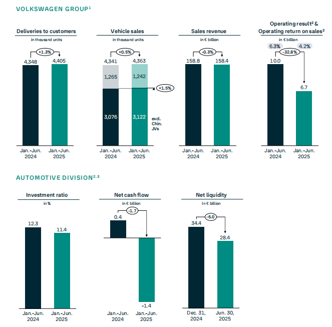 近日,大众汽车集团公布了2025年上半年业绩。