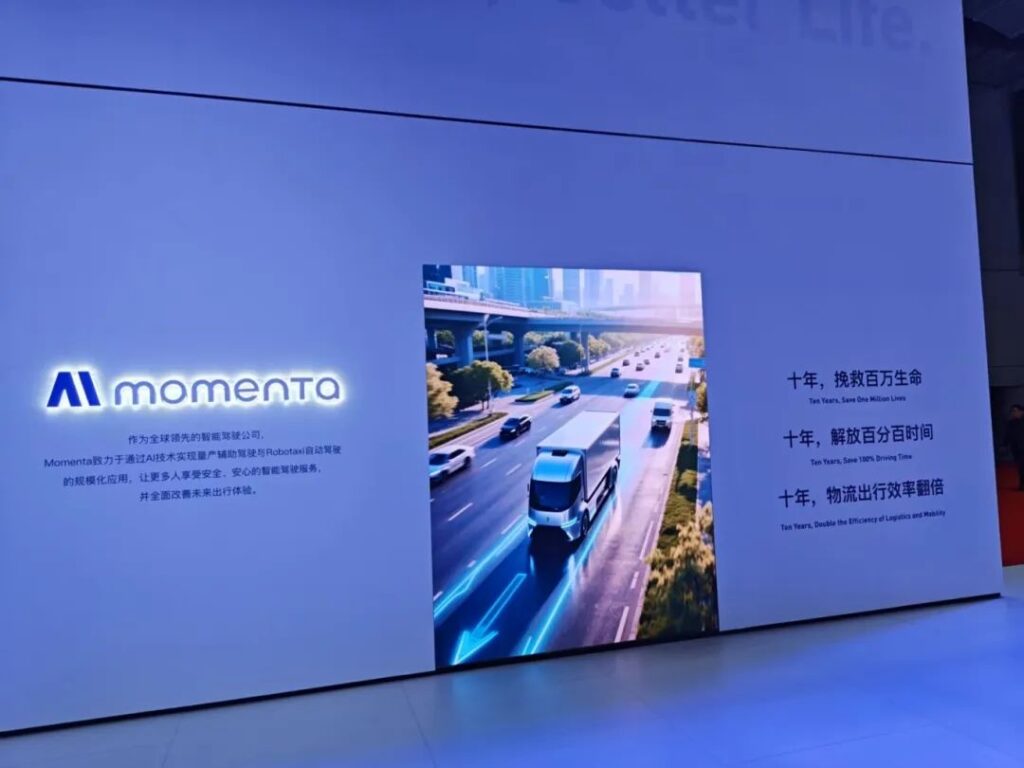“Momenta展台布置一看就是赚到钱了。”智能驾驶辅助行业的朋友这样对我评价。如果华为乾崑展台风格更写实,那么Momenta展台并没有摆设太多实物,更追求一种艺术化和想象力空间的特点,却又将“十年,挽救百万生命”这种沉甸甸的话作为标语公示。