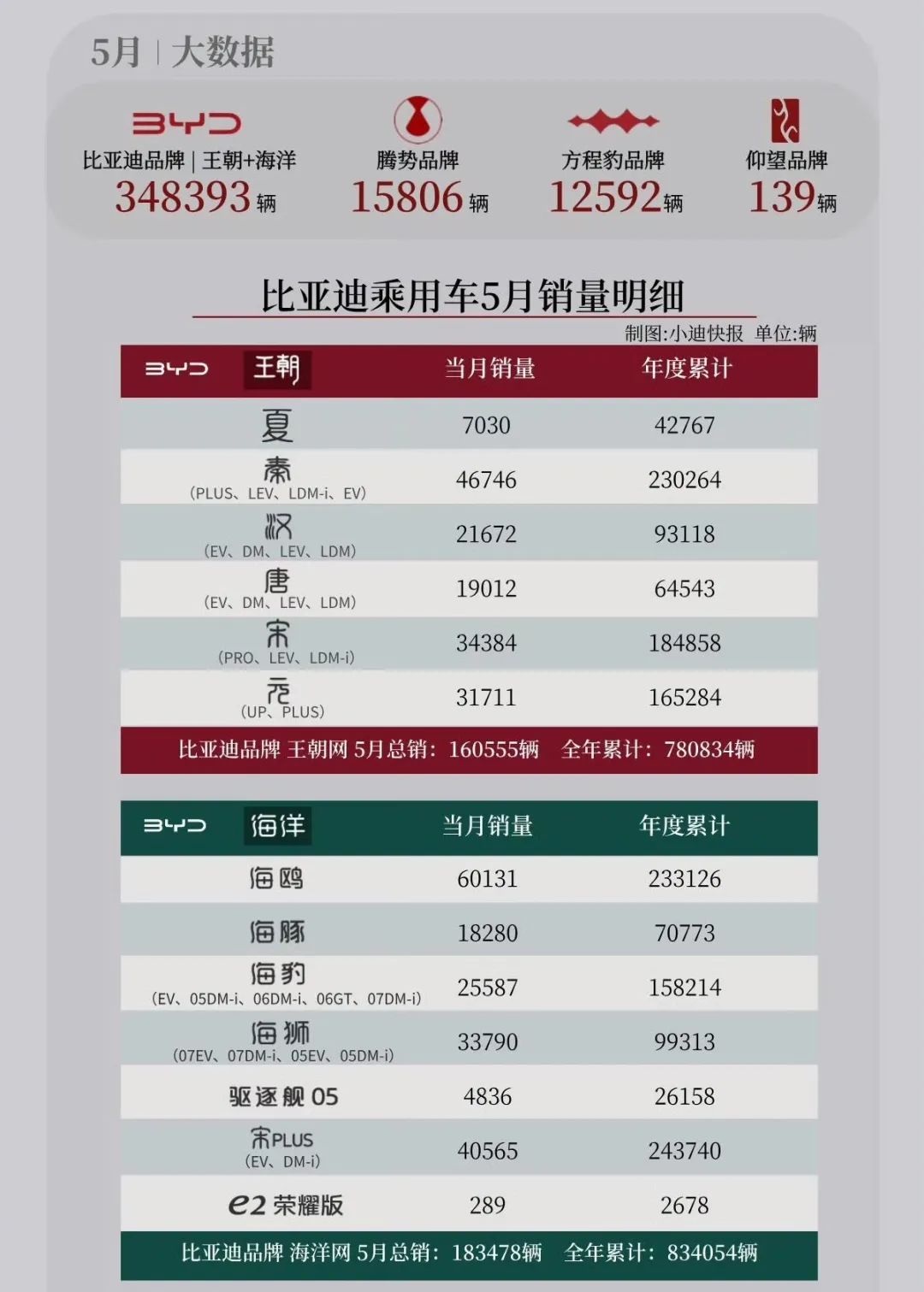 当然,纵观比亚迪的5月终端成绩单,同样能从中洞察到不少蛛丝马迹。整体来看,表现可以说符合预期。
