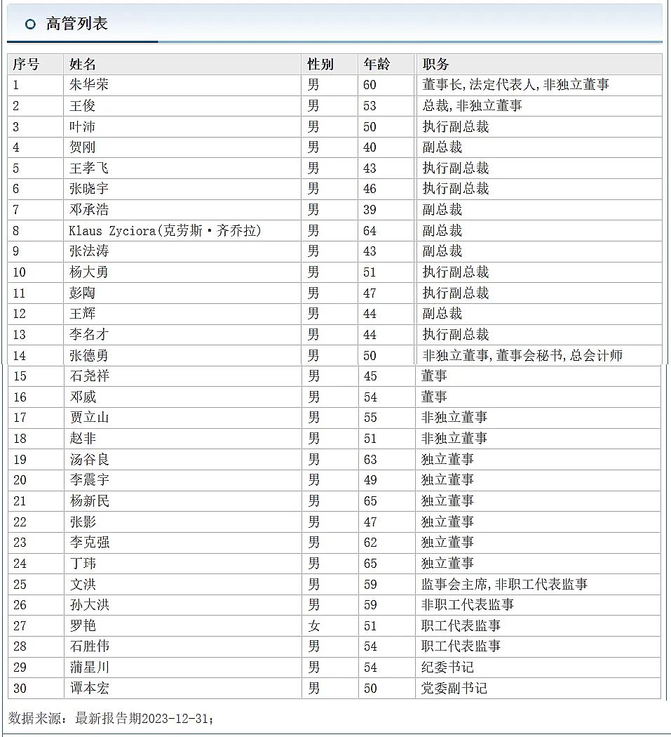 另外,副总裁克劳斯·齐乔拉为60后,长安汽车其余5位都是70后。