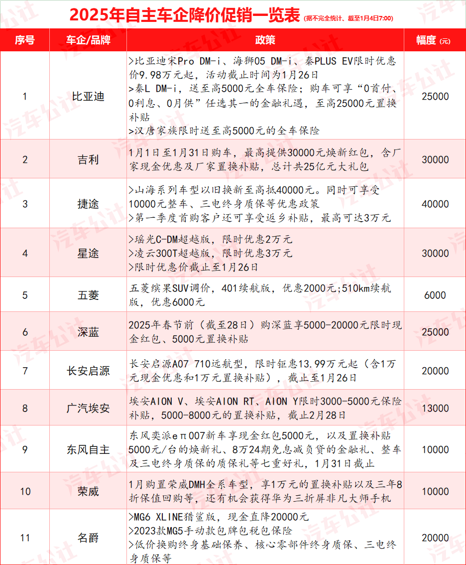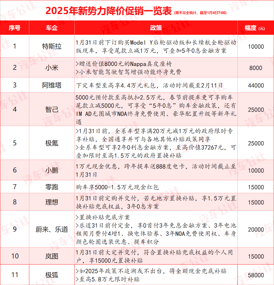 从12月底开始,比亚迪、特斯拉就已经为2025年车市以降价开局打了个样,随后在各大车企纷纷公布2024全年成绩单之际,也一并推出了各种降价促销手段。