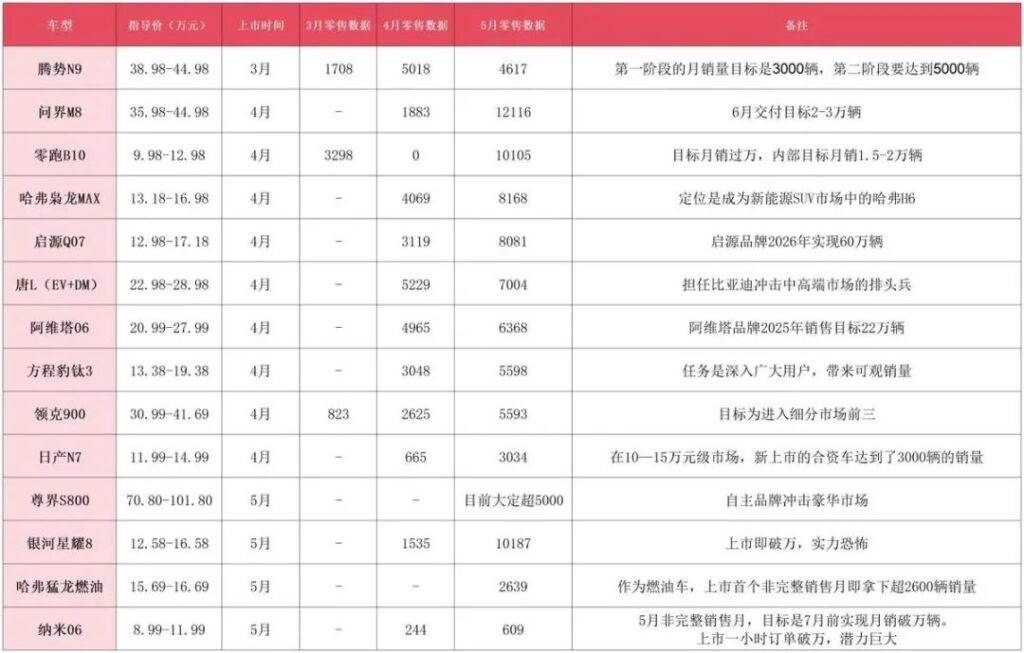 鉴于行业节奏大幅加快,市场给予新车的接纳期极大缩短,《汽车公社》选取了3月上市以来的30款具备爆款潜力的新车,以定价、市场、销量目标为基准,通过5月和上市以来的销量数据,一窥其大考成绩几何。近半新车销售超预期,多款车型上市即月销过万