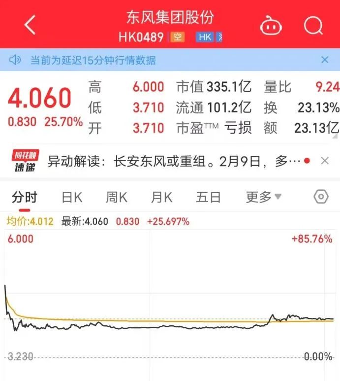 开盘不到一个半小时,东风股份、东风科技即封涨停,东风集团股份港股更是一度涨超50%,创下3年新高。