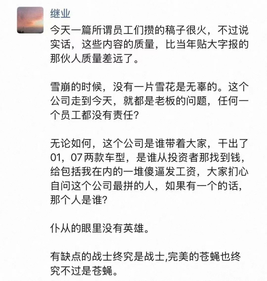 而作为旁观者,对于上述一来一回,更多的感受则集中在,“任何一家公司的倒下,受到影响最大的永远是底层员工、供应商以及这条产业链上的每一环。都这时候了,还在纠结极越的锅究竟应该谁来背,不知道意义何在。”