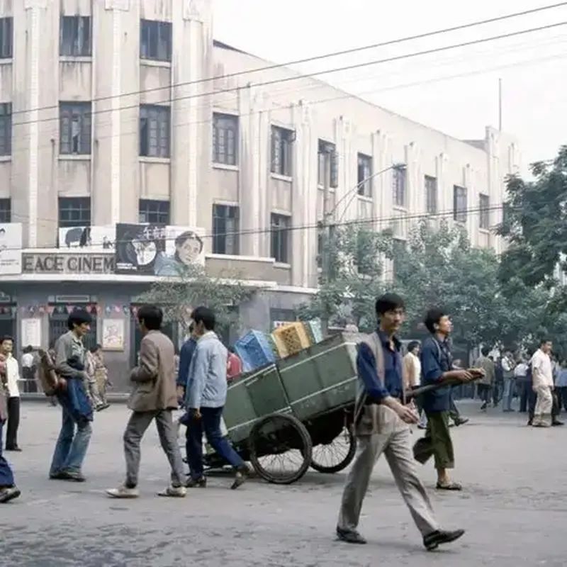 图|上世纪80年代中期重庆街头。私营经济逐渐放开后,市面上已经变得颇为繁华(照片拍摄于1987年,重庆和平电影院门口)