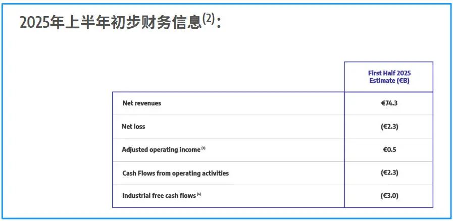 据悉,Stellantis 2025年上半年完整财务业绩将于7月29日如期发布。