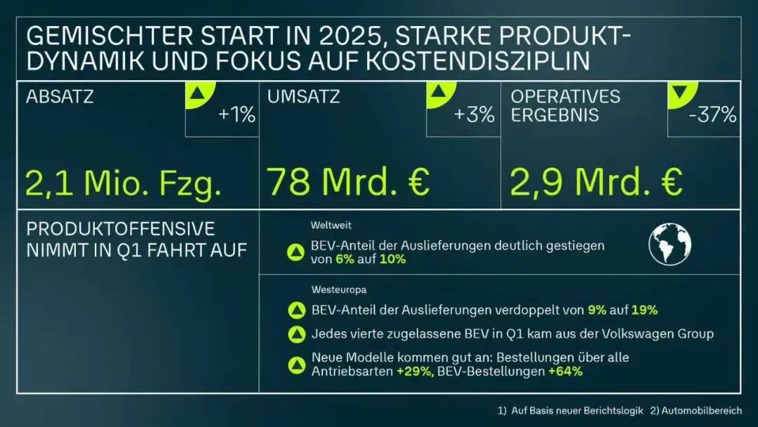从2025年最新数据与行业动态来看,传统巨头与新势力均面临“冰火两重天”的境遇,技术路线选择、供应链韧性、市场战略灵活性等都在成为决定成败的关键因素。而正是在这一背景下,大众汽车集团于近日交出了一份充满矛盾性的季度答卷。