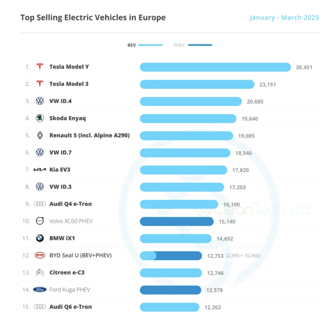 其中,美洲市场保持强势增长,北美市场同比增长4%、南美市场同比增长17%;欧洲板块持续发力,西欧市场同比增长3%、中欧和东欧同比增长8%。尤其是欧洲市场凭借113%的纯电销量增幅,巩固了其电动车市场领导地位,市场份额约为26%,接近三成。