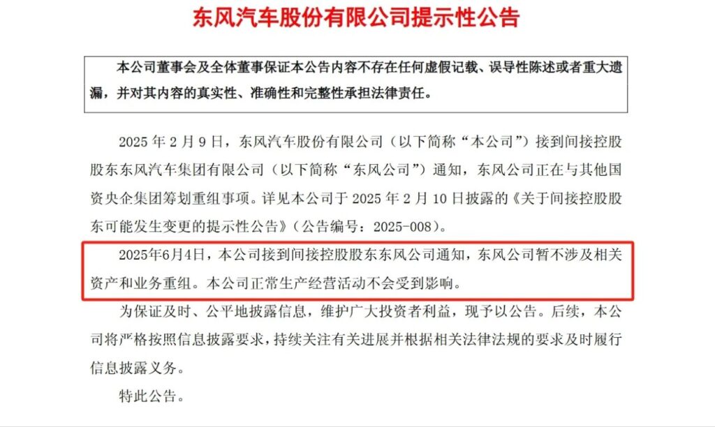 也就是说,关于2月9日的东风汽车与兵器装备集团重组事宜目前告一段落。
