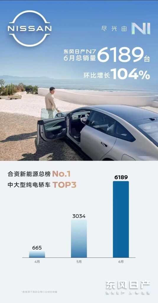在他的主导下,东风日产开启新一轮新能源转型。7月10日公布的6月份最新销量数据显示,东风日产N7以6189辆的月销量,斩获合资纯电车型销量榜首。
