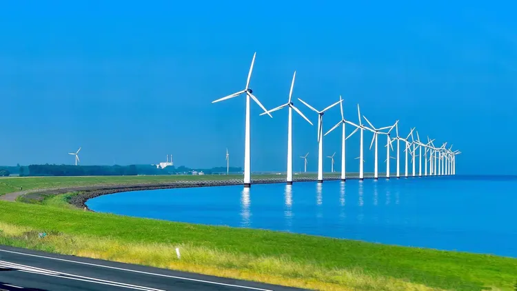 图|阿姆斯特丹郊外的风力发电机,由其所发出的电能点解水制取的氢气,便是所谓的“绿氢”