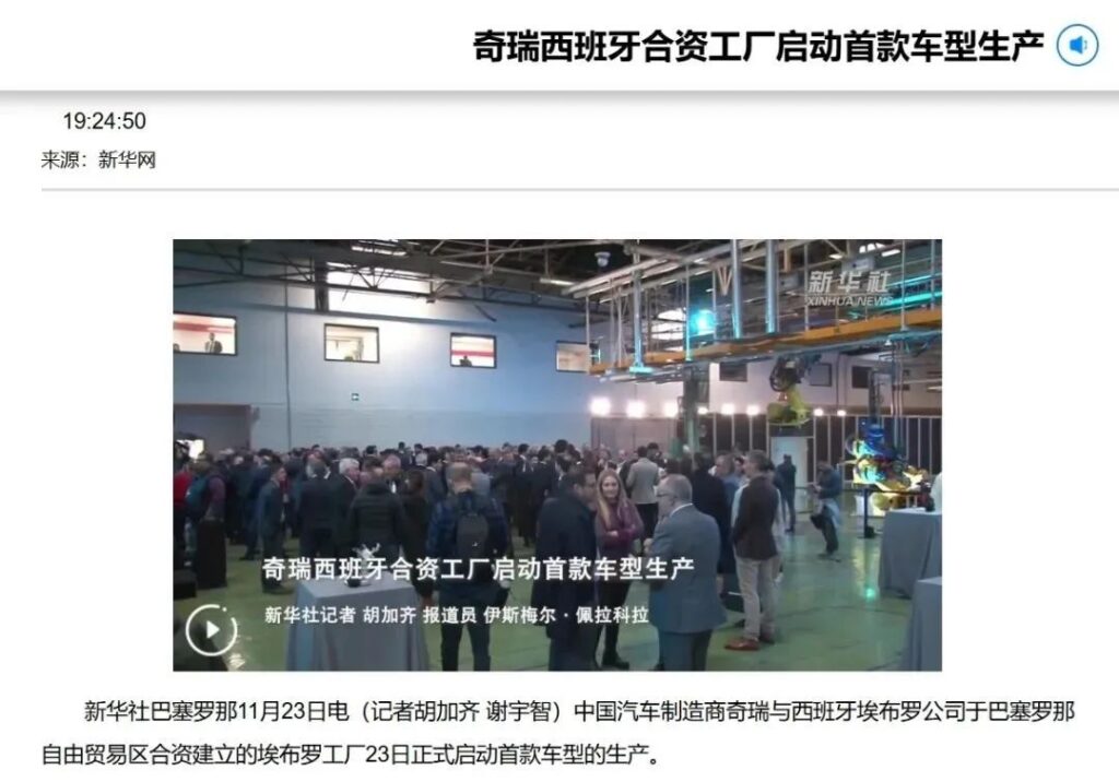 就在欧盟加税事情有所缓和之际,西班牙巴塞罗那当地时间11月23日16:00,在中西两国政要的共同见证下,奇瑞与西班牙EV MOTORS合资工厂的首款产品——EBRO品牌S700举办了下线仪式。