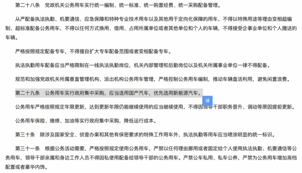 近日,国家印发修订后的《党政机关厉行节约反对浪费条例》,明确要求公务用车采购全面国产化,并将新能源汽车列为优先选项。
