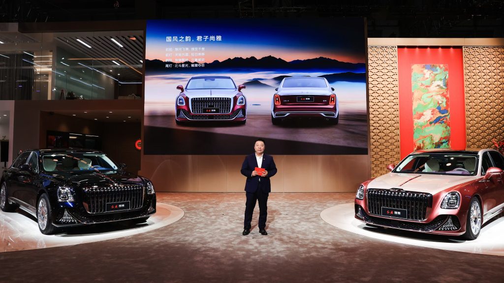 随后,中国一汽总经理助理兼红旗品牌运营委员会副总裁柳长庆详细介绍了红旗金葵花国雅在外型设计、内饰布局、动力组合、智能配置等方面的卓越表现。他透露,国雅采用了国际领先的汽车设计理念和技术成果,不仅在外形上彰显了中国传统文化的韵味与现代科技的融合,更在内饰和动力系统上实现了前所未有的舒适与高效。同时,柳长庆还公布了红旗金葵花国雅的官方指导价,并表示品牌将为首批预订用户提供5重专属权益,以表达对用户支持与厚爱的感激之情。