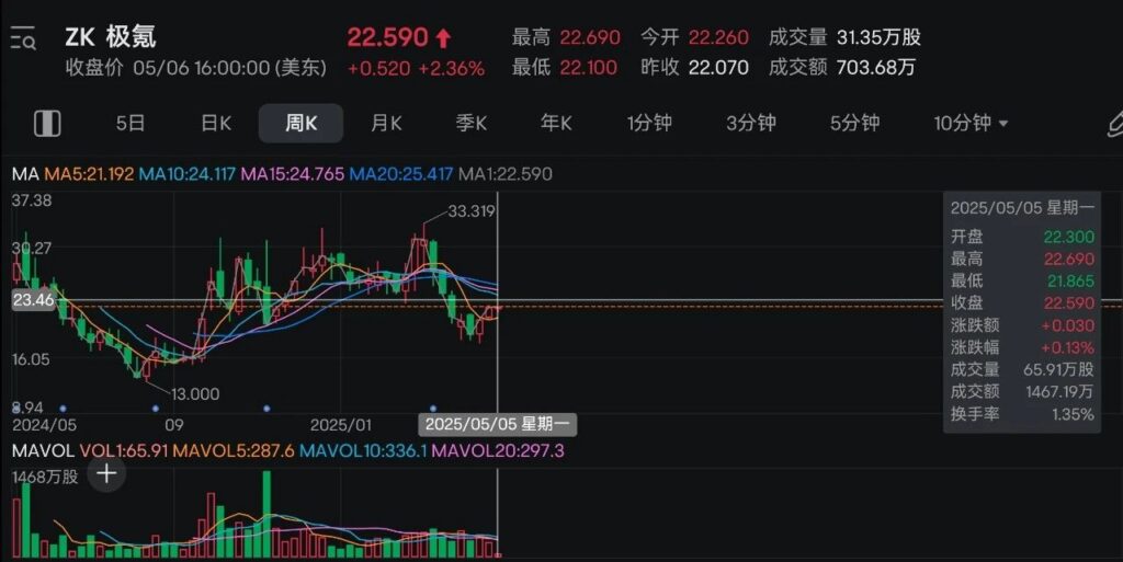 去年5月10日,极氪在纽约证券交易所成功上市,发行价为21美元,截至5月6日,极氪美股收盘价为22.59美元。去年11月,极氪整合领克,组建极氪科技集团,旨在打造年产销百万级的全球领先高端豪华新能源汽车集团。