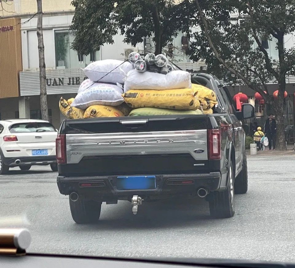 图|这幕画面我们见着稀奇,但实际在美国是常态——这正是皮卡的主要用途之一