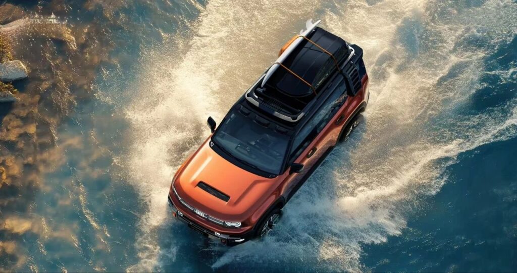 该车有纯电、增程、混动多种动力形式,可随时切换前驱、后驱、四驱等功能。具备蟹行、原地掉头、爆胎行驶等基本功能,而且还可以实现无人漂移,可实现80公里每小时的麋鹿测试,做到了硬核SUV全球行业第一。