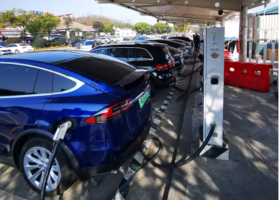 图|要么排队,要么闲置,高速休息区的充电桩,大致上维持着这种奇怪的状态