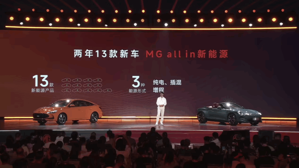 而在车市激战正酣的盛夏,上汽集团旗下的MG品牌同样也宣布了一项雄心勃勃的计划–“All in新能源”,未来两年内将密集推出13款覆盖纯电、插混、增程三大技术路线、横跨轿车、SUV、跑车等几大品类的新能源产品。