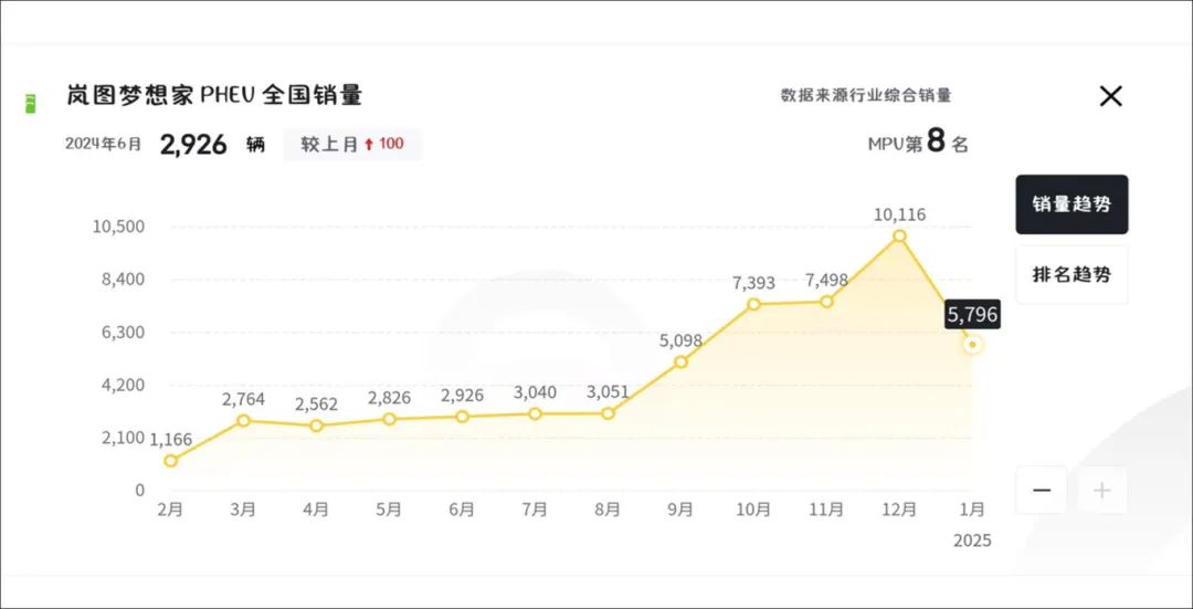 当前,单论MPV市场,和华为合作所能带来的质变,事实上也是有典型案例。纵观整个MPV销量榜近半年的变化,最有黑马潜质的无疑就是岚图梦想家。