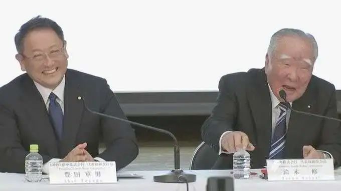 铃木修曾经和丰田章男一起,制定了两家企业并肩作战的重要纲领。丰田和铃木从2016年启动业务合作,并于2019年达成资本层面的联合,在多个发布会上,我们都能看到铃木修和丰田章男携手发言,接受采访与合影的场景。