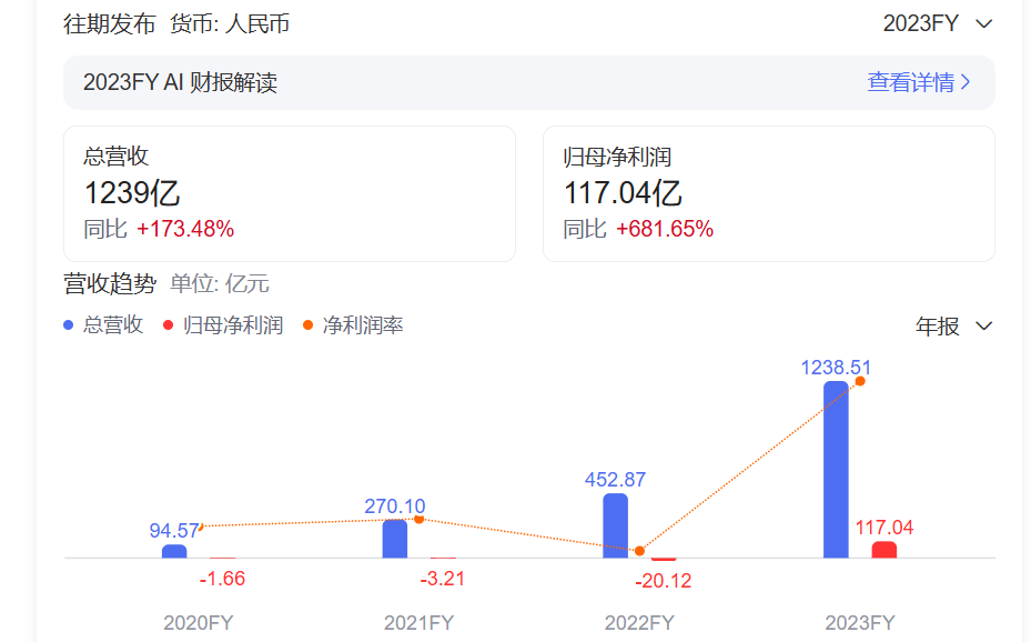 同比暴增173.5%高达1238.5亿元的全年营收让理想汽车成为中国首家营收破千亿元的新势力车企,118.1亿元的全年净利润,实现了交付以来的全面盈利,打破了新势力造车长期深陷亏损的困境。