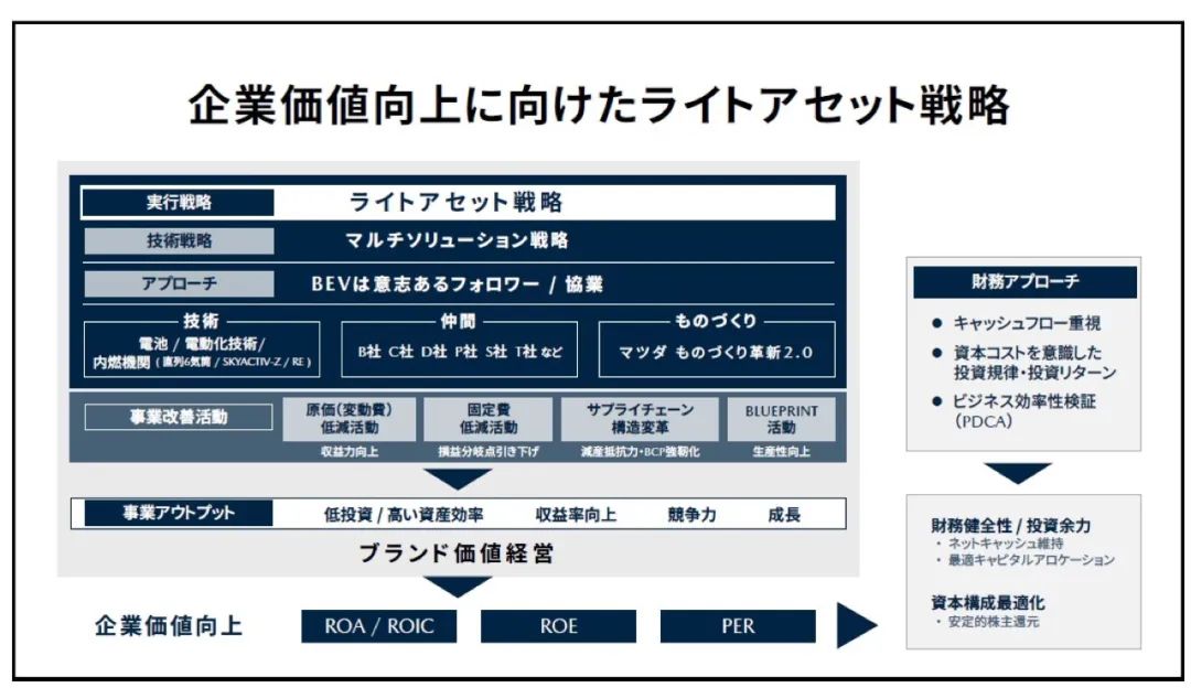 马自达指出,电动汽车电池需要巨额投资。在2022年11月的公告中,马自达曾预估,若独立采购电池,成本将超过7500亿日元。然而,通过实施“精益资产战略”,这一初始估算成本已减半。