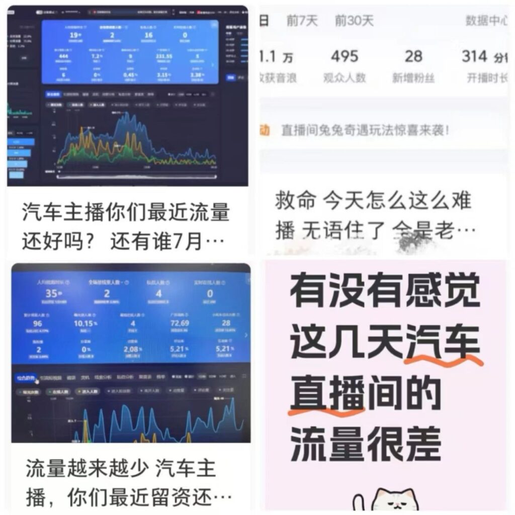 原因并不在于Jennie。翻阅社交平台不难发现,一众汽车主播,无论头部、腰部抑或尾部,均在忧心忡忡地发帖,分享自己7月流量断崖式下滑的现状,并希冀能通过抱团取暖探明原因。尽管是行业的风向突转造成的不可逆转事件,但其带来的结果仍需要销售独自承担。而当品牌出现舆论较大的负面事件时,汽车主播则不可避免地成为舆论首当其冲对准的对象。