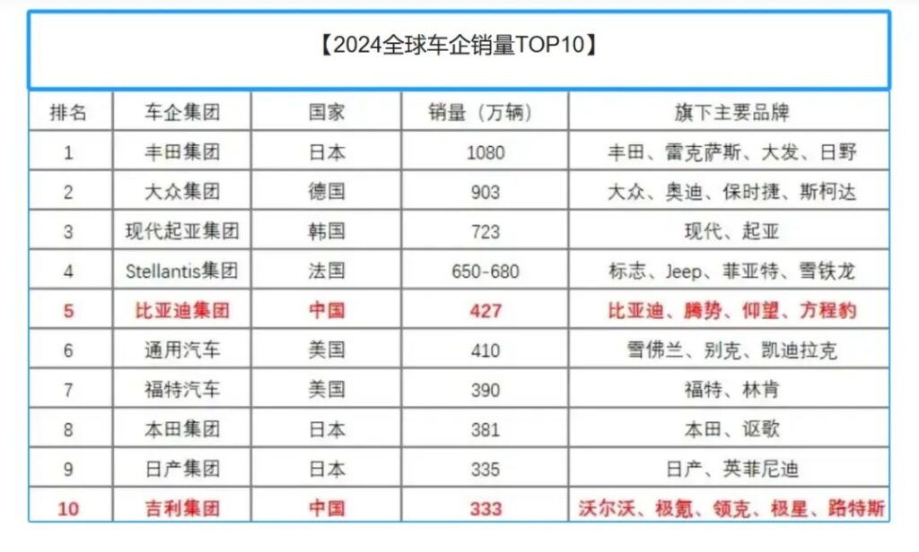 从全球市场地位来看,中国车企在国际舞台上的表现仍有待提升。多年来,鲜有中国车企能够常年跻身全球前10。这反映出中国汽车产业在全球市场的竞争力相对不足,缺乏具有广泛影响力和深厚底蕴的领军企业。