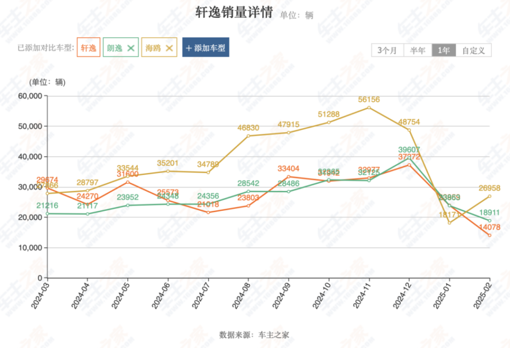 就拿紧凑型轿车来说,曾经大众朗逸和日产轩逸是长期霸榜这一细分市场的标杆,在中国市场上都有着悠久的历史和广泛的用户基础,它们的表现一直非常出色,巅峰年销量动辄30多万辆。前者凭借稳定可靠的产品质量和宽敞舒适的车内空间赢得了消费者的青睐;后者则凭借省油耐用和终端价格低的优势,长期占据销量榜前列。