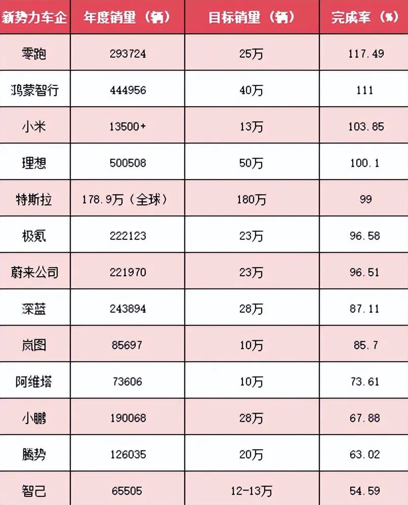 但在市场竞争加剧,用户的品牌认知成为重要资源后,销量目标的宣传导向作用似乎超越了实用的价值作用。仔细梳理一番不难发现,2024年完成销量目标的不过寥寥7家车企,屈指可数。在动辄就要实现50%增幅乃至销量翻倍的新势力品牌中,仅有零跑、理想、小米、鸿蒙智行兑现了销量承诺。