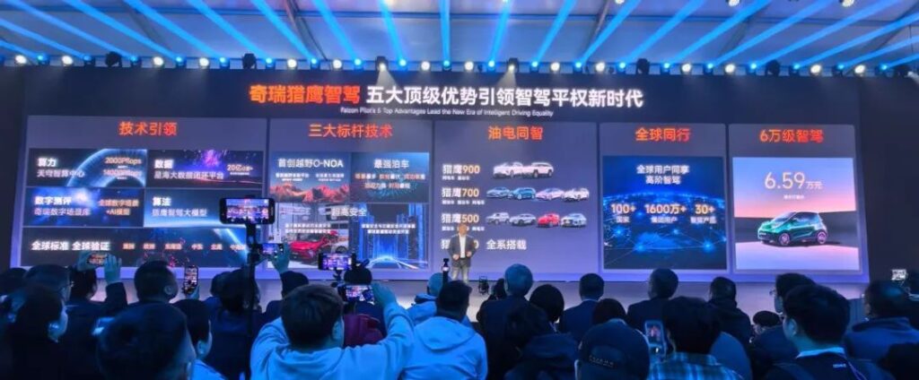 因而我们就能明白,这次发布会上奇瑞汽车执行副总李学用宣布,2025年高阶智驾量产车会全球发售,向海外用户稳步推进,这背后的含义是什么。同时,奇瑞2025年30+款车都会搭载高阶智能驾驶系统。