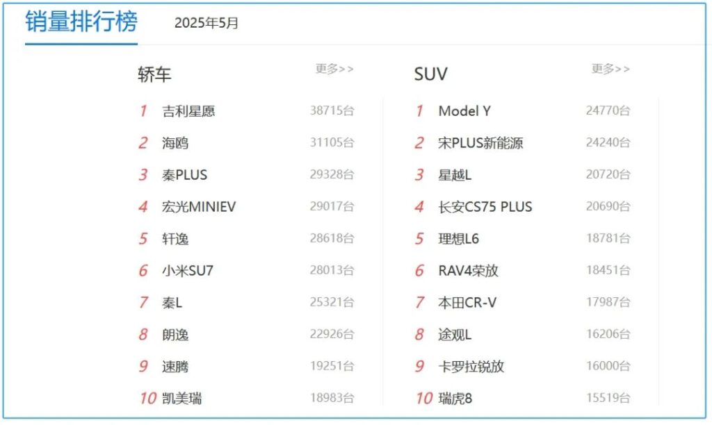 这两款车型的销量虽仅处于起步阶段,却已展现出不容忽视的潜力。相比之下,5月份榜单中那些上市超一年的“老选手”,若只是依赖过往积累的口碑和市场惯性“吃老本”,而不在技术革新、配置升级与用户体验优化上持续投入,被后来者赶超几乎成为必然趋势。