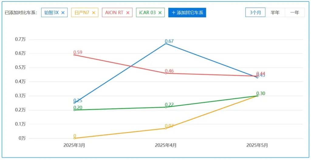 铂智3X和N7背后的广汽丰田与东风日产,不仅拥有成熟的供应链体系和深厚的制造底蕴,还能凭借庞大的线下渠道快速铺货,一旦解决纯电车型的适配问题,实现产能爬坡与市场渗透,其销量提升速度不容小觑。