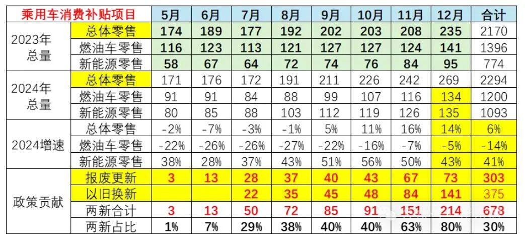 而商务部数据12月数据显示,截至12月13日,全国汽车报废更新超过244万辆,置换更新超过259万辆;估计全年报废更新近270万辆,汽车置换更新超310万辆。2024年以来,消费品以旧换新政策整体带动相关产品销售额超万亿元。