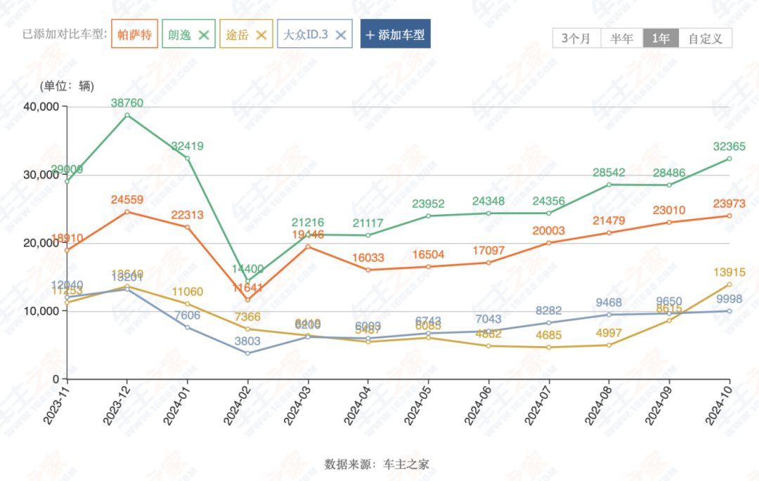 车型表现上,途岳家族10月销量近1.4万辆,同比增长72.8%;帕萨特家族10月销量达2.4万辆,同比增长37%;朗逸家族10月销量3.2万辆,自2008年问世以来,朗逸家族销量也已经超过600万辆。