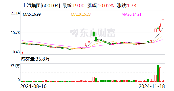虽然上汽集团在销量上的表现未达到预期,但近日上汽集团的股票不断涨停开盘,成为央企破净股中最引人注目的股票之一。尤其是11月12日和13日的A股市场,三大指数集体下跌的背景下,上汽集团却一骑绝尘,股价连续两天涨停,让不少投资者大跌眼镜。