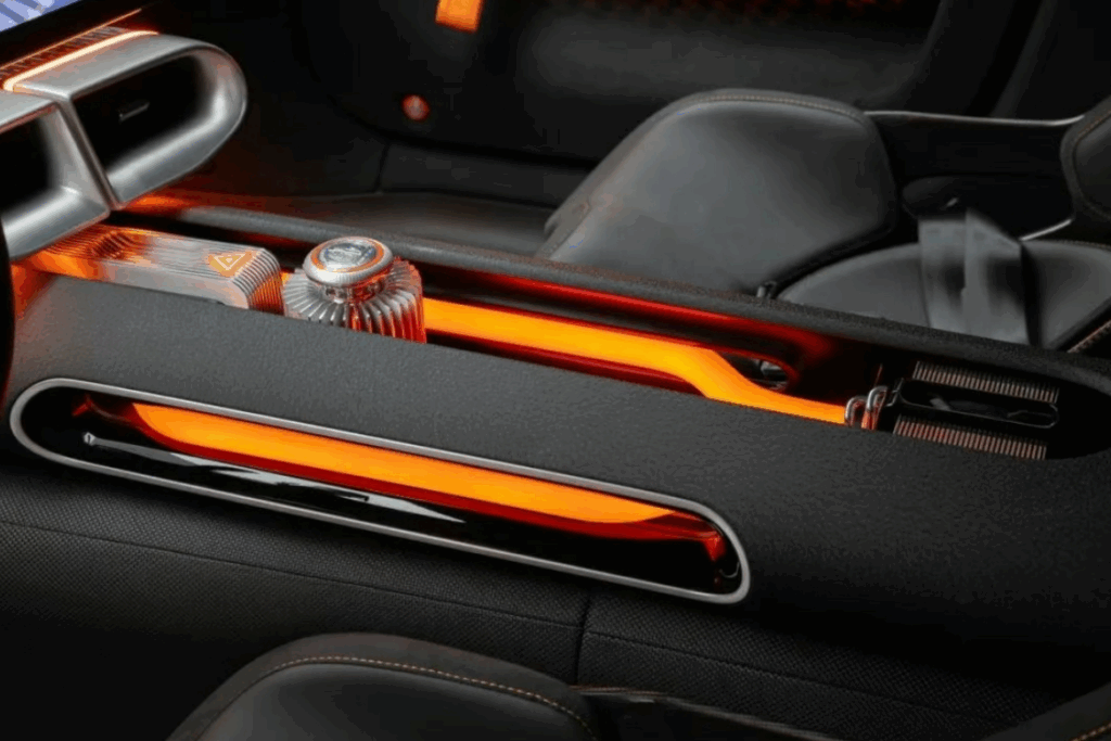 内饰灵感则来源于赛车,使用类似AMG ONE的方向盘,并采用双联屏设计,氛围灯设计亮眼。