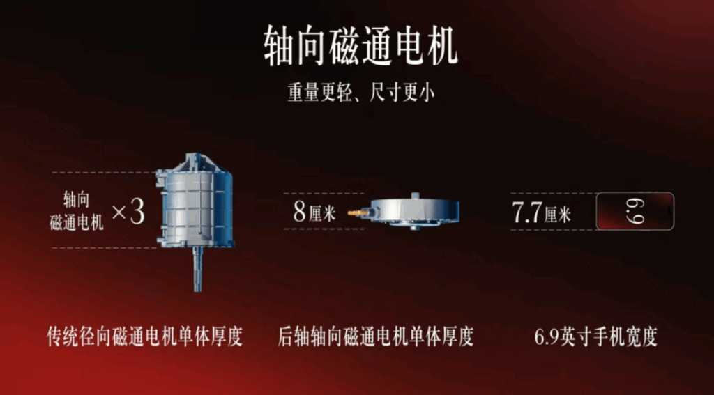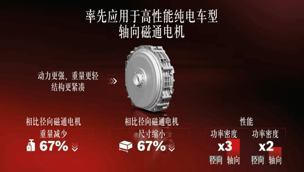 除了造型设计,这次AMG GT XX 概念车也给出了比较强悍的技术,比如轴向磁通电机,电机厚度仅8厘米,体积仅为传统电机1/3,功率密度提升3倍,重量减轻67%。3台电机的加持让总功率达1360马力,0-100km/h加速时间2.5秒,极速超360km/h。